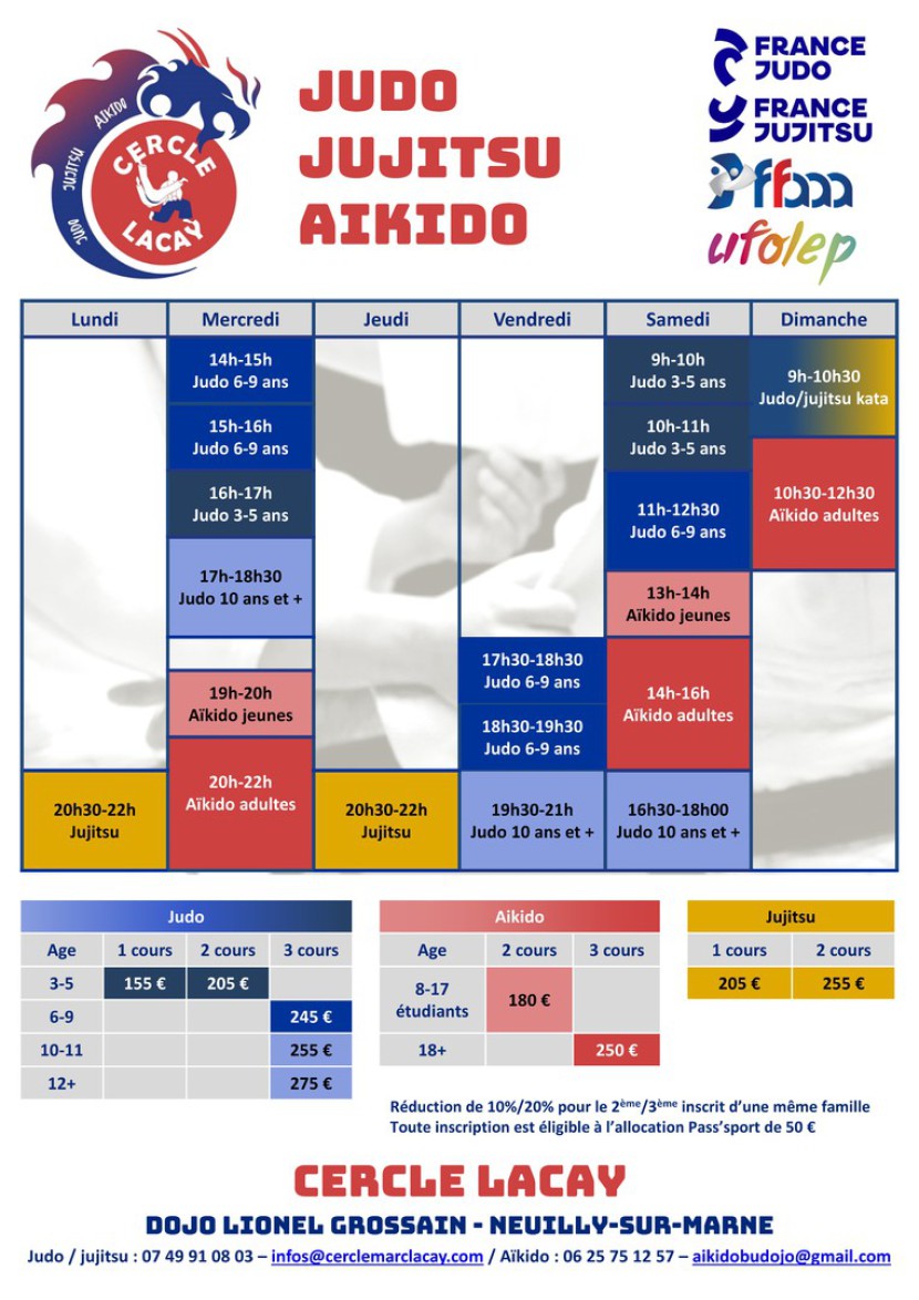 L'aikido, le jujitsu et le judo sont les trois principales disciplines enseignées au sein du Cercle Lacay depuis sa création.